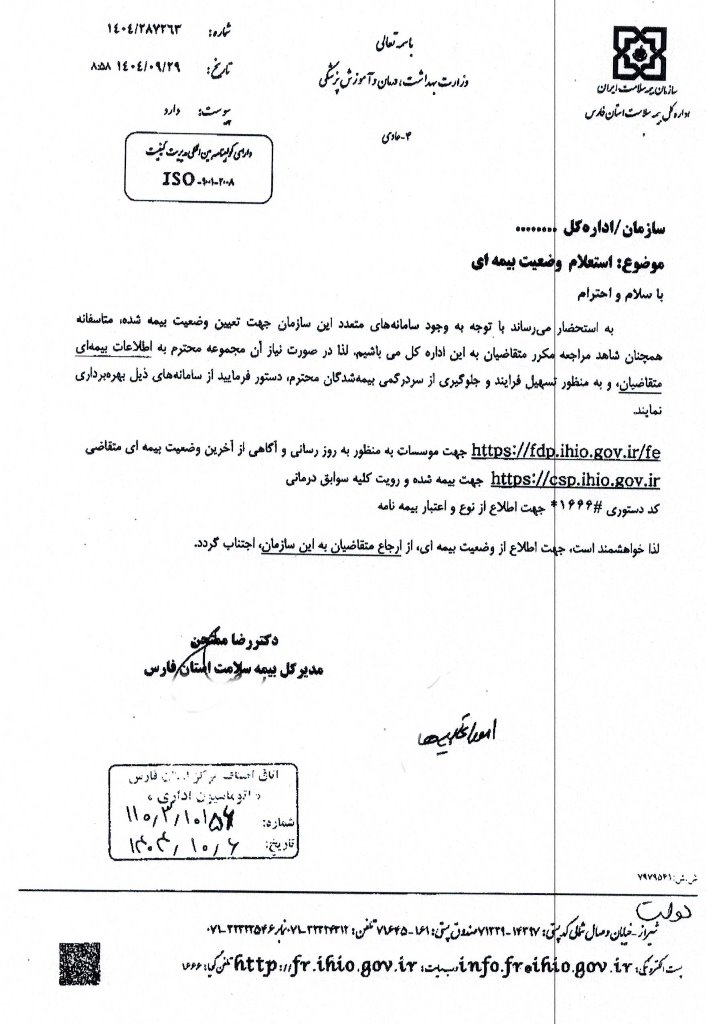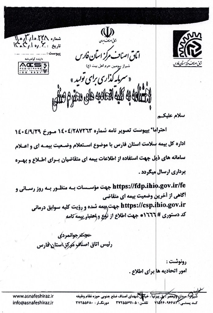 بخشنامه اتاق اصناف با موضوع معرفی سامانه های مربوط به بیمه سلامت جهت استفاده از اطلاعات بیمه ای