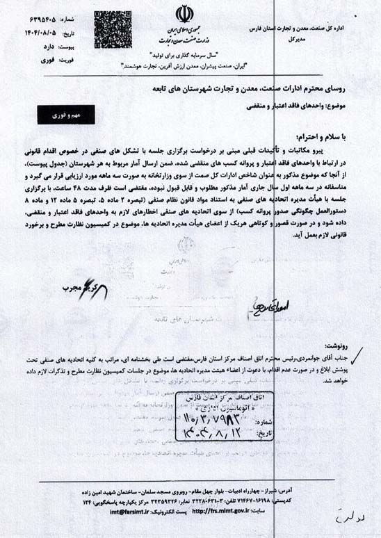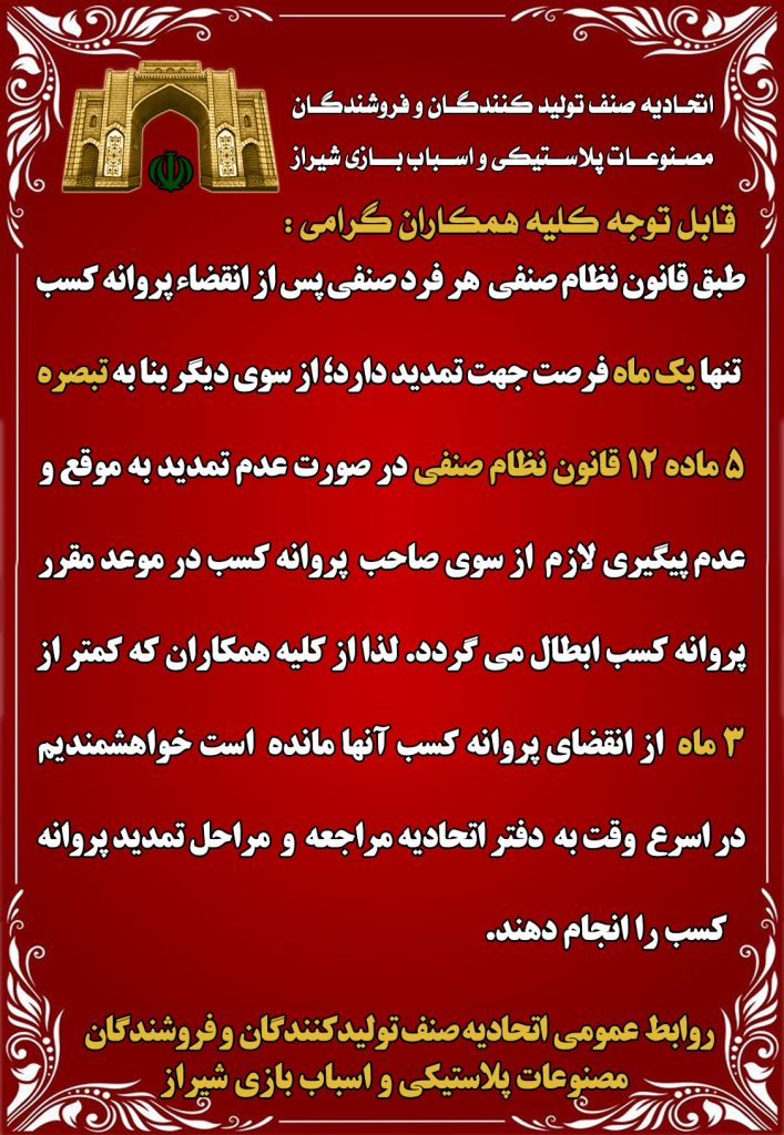 اتحادیه صنف تولید کنندگان و فروشندگان مصنوعات پلاستیکی و اسباب بازی شیراز