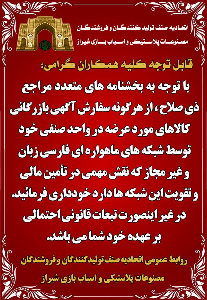 اتحادیه صنف تولید کنندگان و فروشندگان مصنوعات پلاستیکی و اسباب بازی شیراز