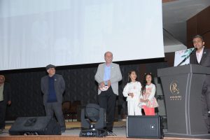 (پخش سرود ملی جمهوری اسلامی ایران در آغاز همایش)